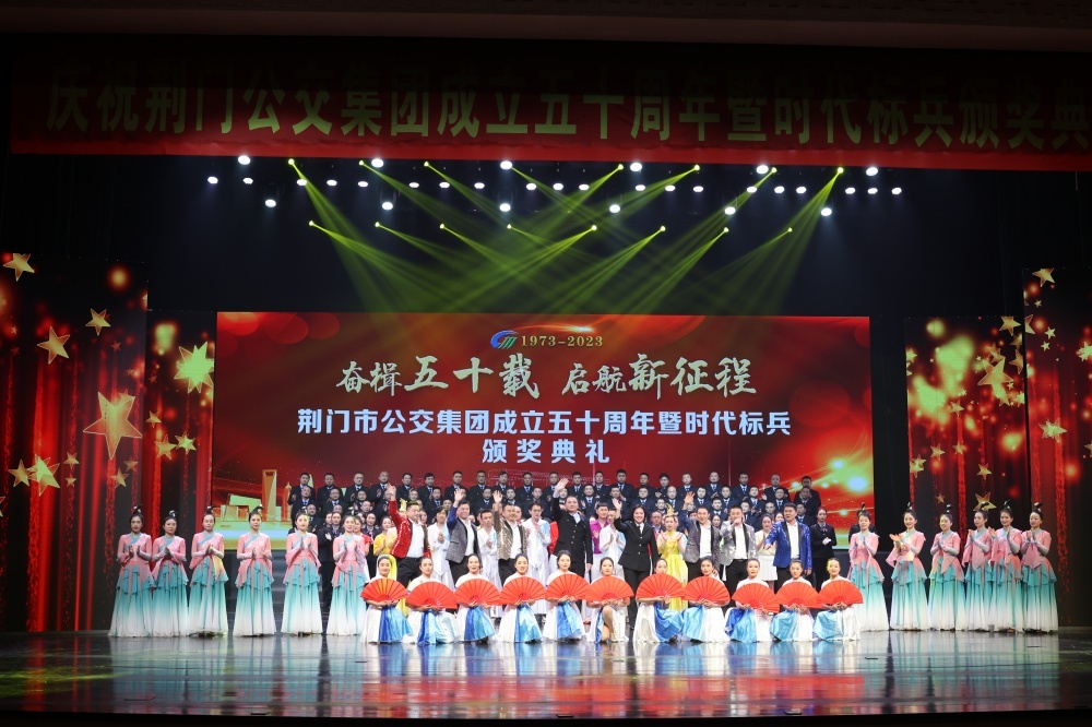 12月8日下午,荊門公交集團成立50周年暨時代標兵頒獎典禮在荊門大劇院圓滿舉辦。荊門市人民政府副市長、荊門高新區黨工委書記、掇刀區委書記周俊杰,市政府副秘書長傅強,市政府國資委黨委書記、主任唐興杰,市交通運輸局黨組成員、副局長李洪震及市直相關單位、企業負責同志,省公交協會代表、武漢市公交集團董事會秘書李建國及各市州公交集團負責同志和荊門公交干部職工代表齊聚一堂,共同見證了這具有里程碑意義的重要時刻。