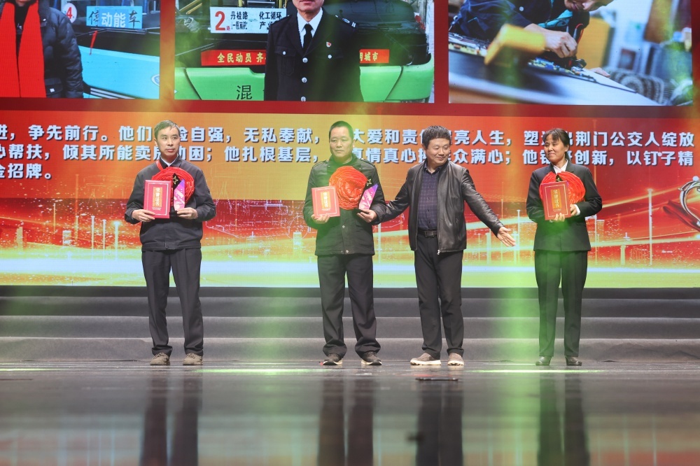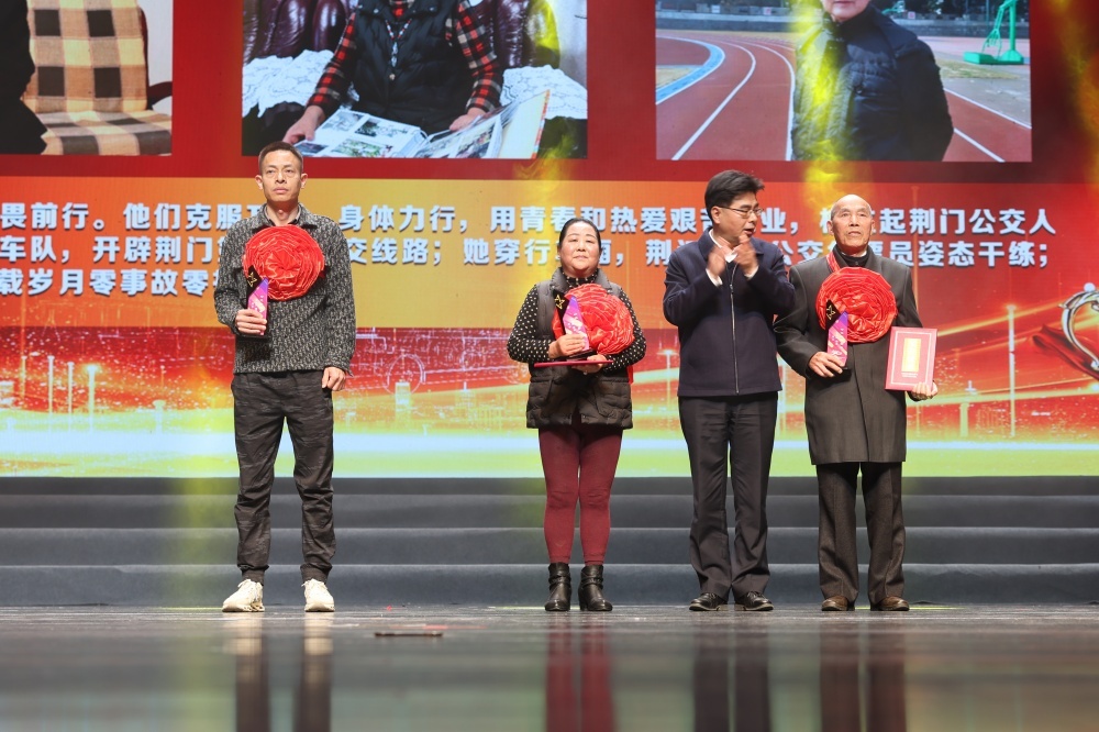 頒獎環節,在荊門公交發展歷程中做出過杰出貢獻的8名“時代標兵”人物,被授予“崢嶸歲月”“風華正茂”“無悔青春”時代標兵,感謝他們一路走來的無私付出和拼搏奮斗。